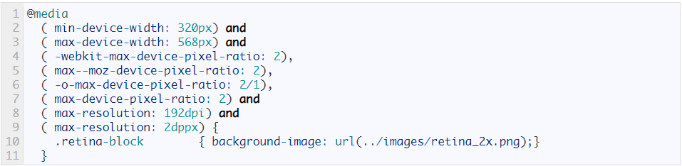 To target devices that support DPI, we need to write specific media queries. Below is the example of a Retina display for the background image in iPhone 6, 6S, 7 and 8: